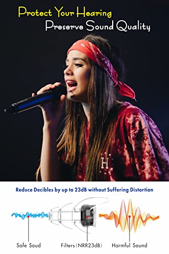 Zeg vaarwel tegen tinnitus: met 23 dB-dempingsfilters kunnen deze oordopjes luid geluid effectief verminderen tot een veilig niveau om je oor tegen tinnitus of zelfs gehoorverlies te beschermen. Perfect voor concerten, clubs, rally’s en andere luide evenementen.