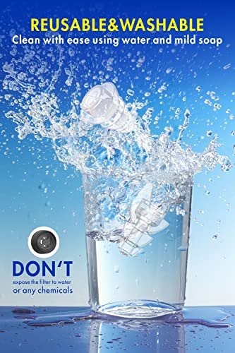 Wasbaar en herbruikbaar: het siliconen materiaal kan worden gewassen en hergebruikt. Houd er rekening mee dat de filters niet in water kunnen worden ondergedompeld.