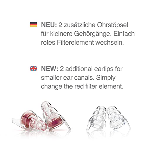 Specification: Senner WomenPro gehoorbeschermende oordopjes voor vrouwen, bijzonder zacht en comfortabel, voor kleinere gehoorgangen, rood/transparant, herbruikbaar en met aluminium bakje