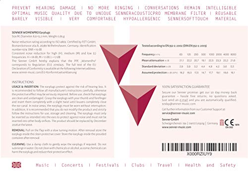 Hypoallergeen materiaal: de Senner SoftTouch-oordopjes zijn getest door onafhankelijke Duitse laboratoria en zijn geschikt voor langdurig dragen. Geen jeuk of drukpijn. Hij is ideaal om de hele dag te dragen op festivals en lange repetitities. De perfecte oordopjes voor muzikanten en om luide muziek te beluisteren.