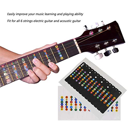 Specification: Gitaar Fretboard Stickers Set, Kleur Gecodeerde Note Vinyl Decals voor Gitaar Leren, Toets Frets Kaart voor Beginner Leerling Praktijk Fit 6 Snaren Akoestische Elektrische Gitaar, Kleur en Transparant