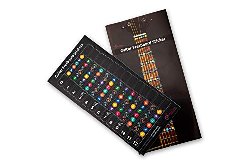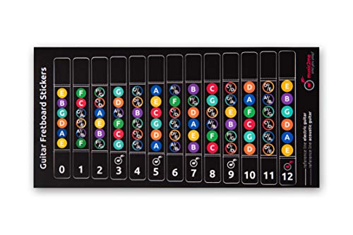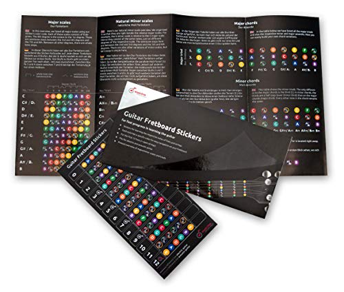 Specification: Gitaar notenstickers inclusief grafiek met Dur- & Mollton ladders en drie klanken.