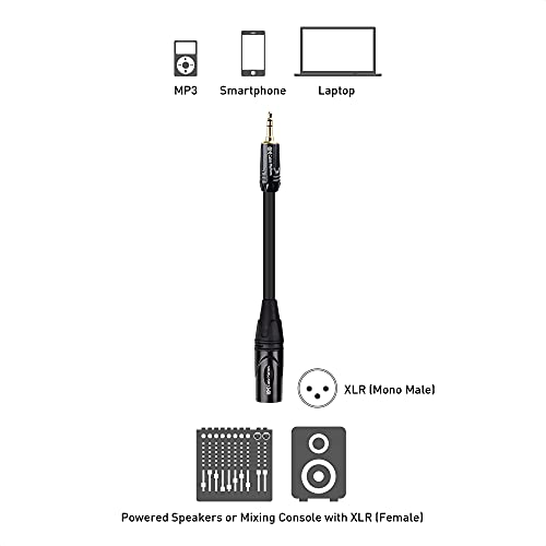 De ongebalanceerde XLR naar 1/8 kabel verbindt een iPhone, iPod, MP3 speler, tablet, laptop, of stemrecorder met een mengpaneel of luidsprekers met eigen voeding; Verbind een smartphone met hoofdtelefoonaansluiting met de XLR ingang; Verbind een tablet met een instrumentenapp met een mengpaneel voor een optreden