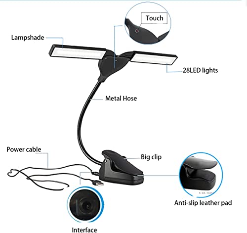Specification: LED Verstelbare Stand Licht, Clip op Orkest Piano Lights, USB oplaadbare 3 Kleur Temperatuur Optioneel, voor Lezen, Piano, Orkest, DJ en Craft wit