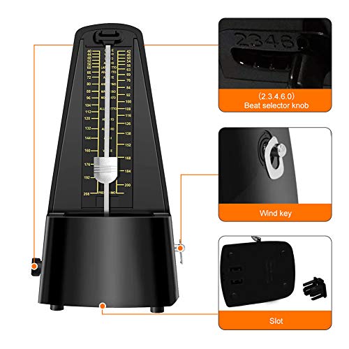 ♪ HOGE PRECISIE EN TEMPO ♪ – Mechanische metronoom binnenkant gemaakt van hoogwaardig mechanisme, dat hoge precisie kan bieden, zorgen voor een stabiele prestaties met een tempo tolerantie van minder dan 1%. Tempo bereik: 40-208bpm; Beat selectie:0,2,3,4,6.
