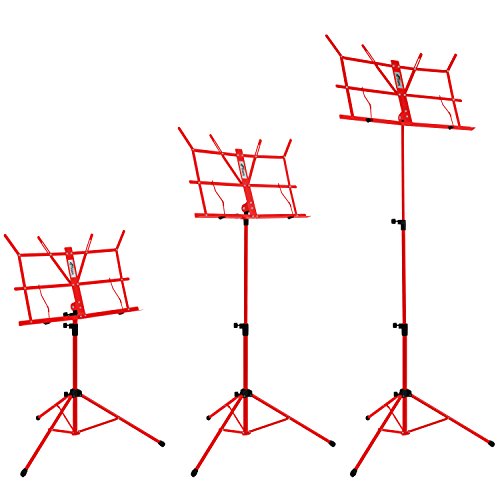 Ideaal voor orkest, school en gebruik thuis. Ze zijn duurzaam, zodat het robuust genoeg is om de hardheid van de school om te gaan. De hoogte van de standaard en hoek van de plank zijn verstelbaar. De driepoot en rubberen voetjes garanderen de stabiliteit. Productdetails: 3-delige steel, inklapbare poten, gewicht: 1,3 kg, hoogte (bodem – plank): 46 – 115 cm, afmetingen van de plank: 51 x 23 cm, diepte van de randafsluiting: 2 cm, ingeklapte afmetingen: 55 x 7 (cm).